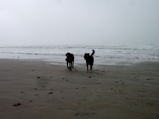 Das linke Knuddeltier hat das Wurfding im Maul.